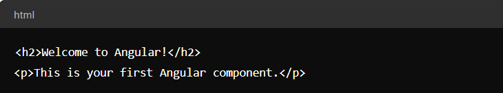 Components are the building blocks of Angular applications. Let’s create a simple component to display a greeting message: